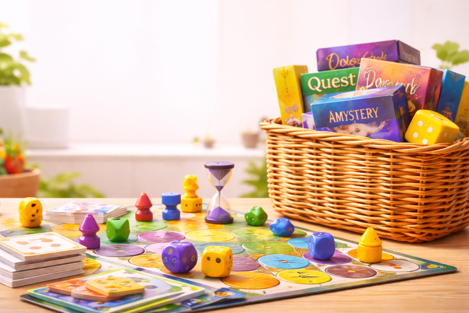 Great family board games balance accessibility with engaging gameplay appealing to children and adults alike. Look for cooperative games where everyone works together, or light competitive games with simple rules but interesting choices. Our family games collection features titles creating memorable moments for mixed-age groups. These games strengthen family bonds while providing entertainment that keeps everyone engaged and entertained.